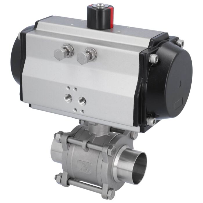 Kugelhahn MA DN50-Anschweißende, mit Antrieb OE110 Edelstahl/PTFE-FKM, hohlraumarm, federrückstellend
