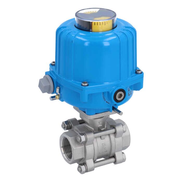 Kugelhahn-ZA, 1"-Innengewinde, mit Antrieb-NE03 Edelstahl/PTFE-FKM, 230V 50Hz, Laufzeit 12sek.