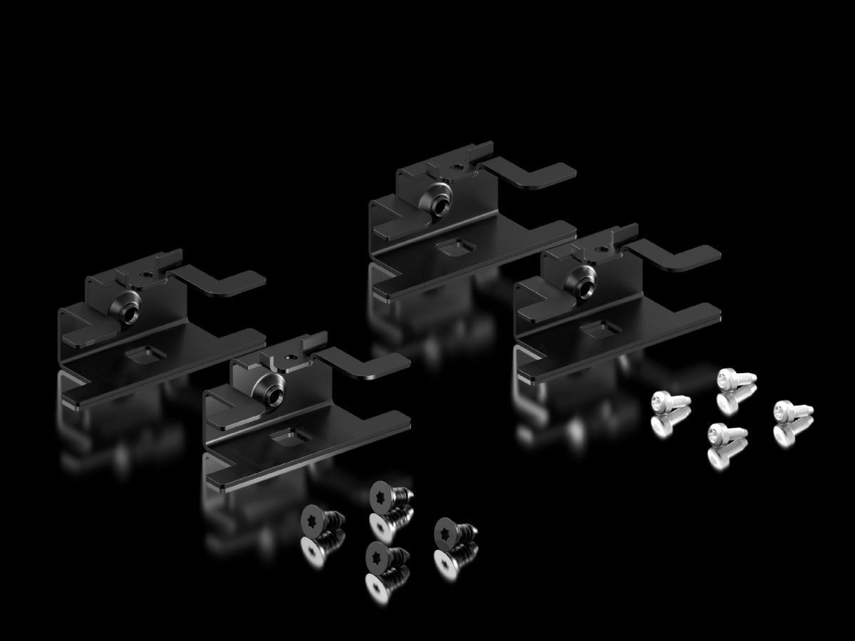 Montagewinkel zur weiteren Stabilisierung des VX Sockels. Die Montagewinkel sind serienmäßig am Sockel vorne und hinten verbaut. Es besteht die Möglichkeit, die Winkel ebenso in der Tiefe zu verbauen.