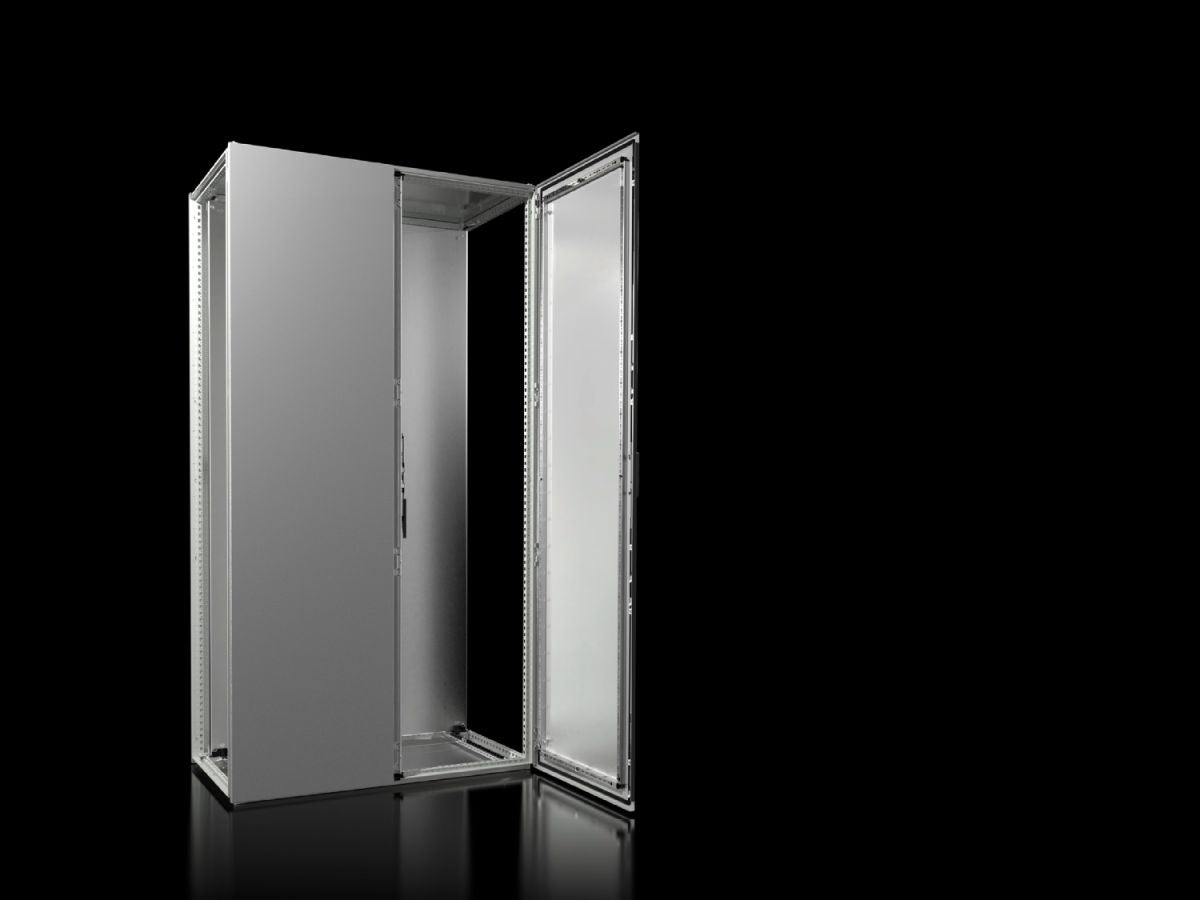 Der Standard im Schaltschrankbau: Schrankrahmen mit zwei Fronttüren, Rückwand, Montageplatte, Dachblech, geteilten Bodenblechen. Perfekt geeignet für einen effizienten Schrankausbau.